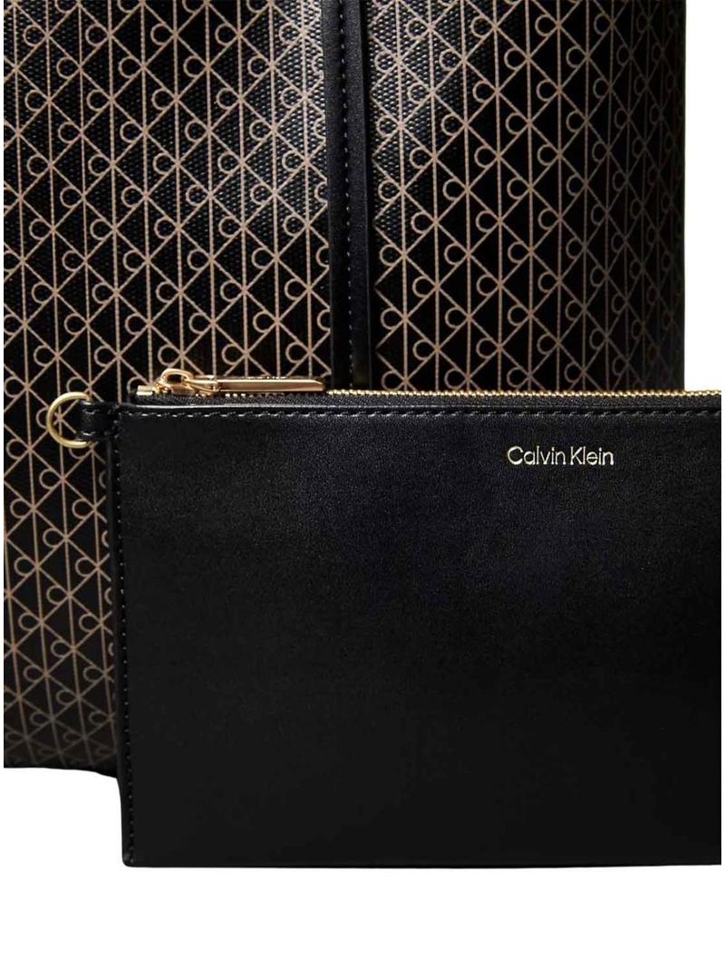 Bolsa Calvin Klein Jeans. Modelo Emblem. Cor preto. Estilo tote. Necessaire removível com zíper. Design com logotipo emblemático em toda a superfície. Alças duplas. Bolso interno com zíper. Altura 22 cm, comprimento 29 cm, largura 9 cm. Queda da alça 18 cm.