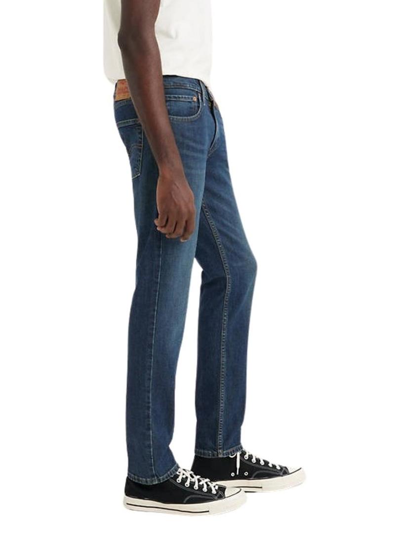 Calça jeans Levis. Modelo 511. Denim escuro. Cinco bolsos. Corte slim. Fecho com botão e zíper. Patch da marca na cintura. Perna levemente ajustada.