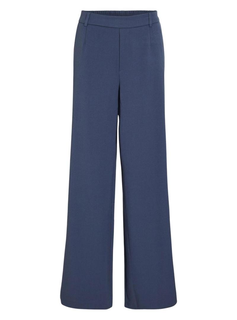 Calça Vila. Modelo Vivarone. Cor azul. Cintura elástica. Cintura alta. Perna larga. Bolsos laterais. Bolsos traseiros com vivo. Ajuste regular. Tecido elástico.