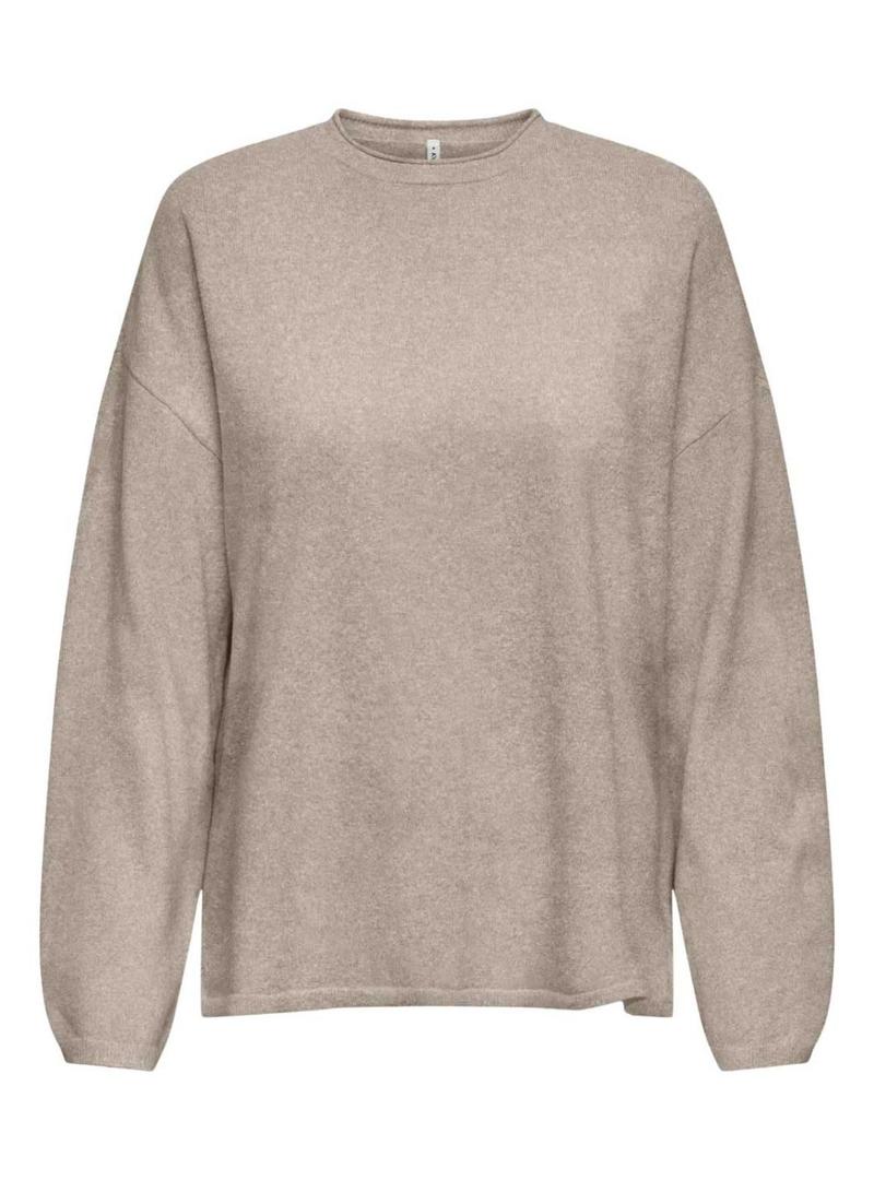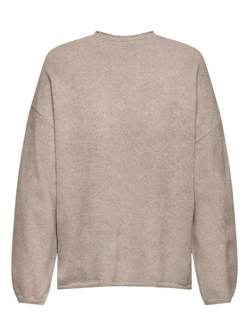 Camisola Only. Modelo Leal Amalio. Cor topo. Gola redonda. Ajuste folgado. Ombros caídos. Manga comprida. Extremidades com nervuras discretas. Tecido de malha macio.