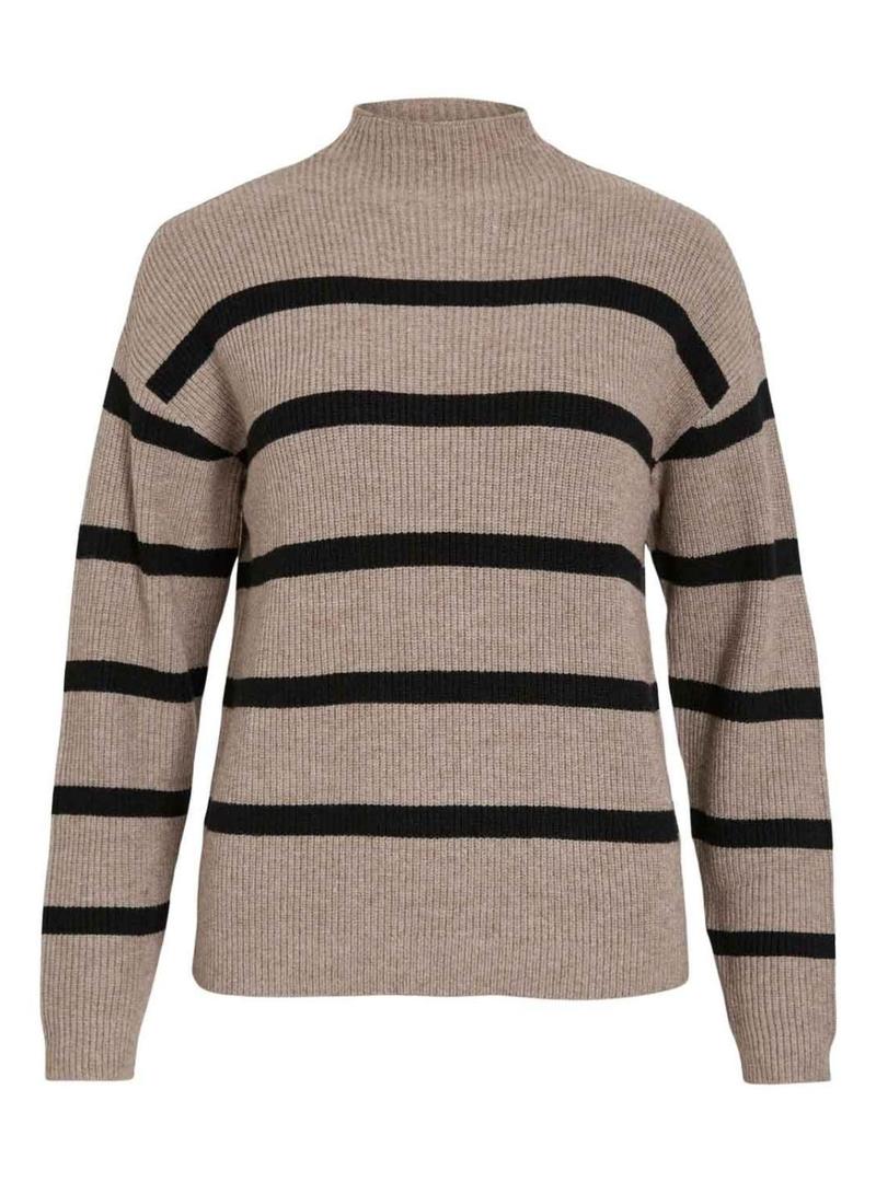 Camisola Vila Viril de gola alta às riscas bege e preto para mulher