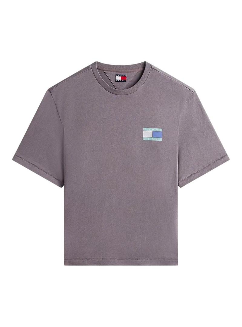 Camiseta Tommy Jeans. Modelo 90S. Cor cinza antracite. Ajuste folgado. Gola redonda. Manga curta. Logotipo estampado no peito e nas costas. Estilo vintage.
