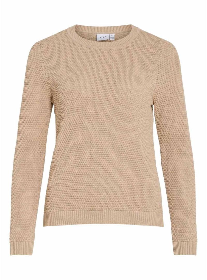 Camisola Vila. Modelo Vidalo. Cor bege. Gola redonda. Manga comprida. Ajuste regular. Tecido de malha estilo em relevo. Extremidades caneladas.
