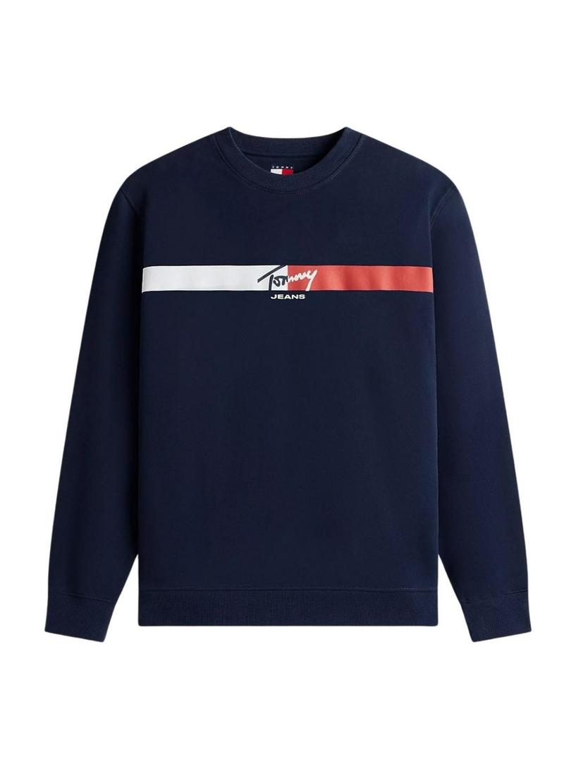 Moletom Tommy Jeans Sign Stripe azul marinho para homem