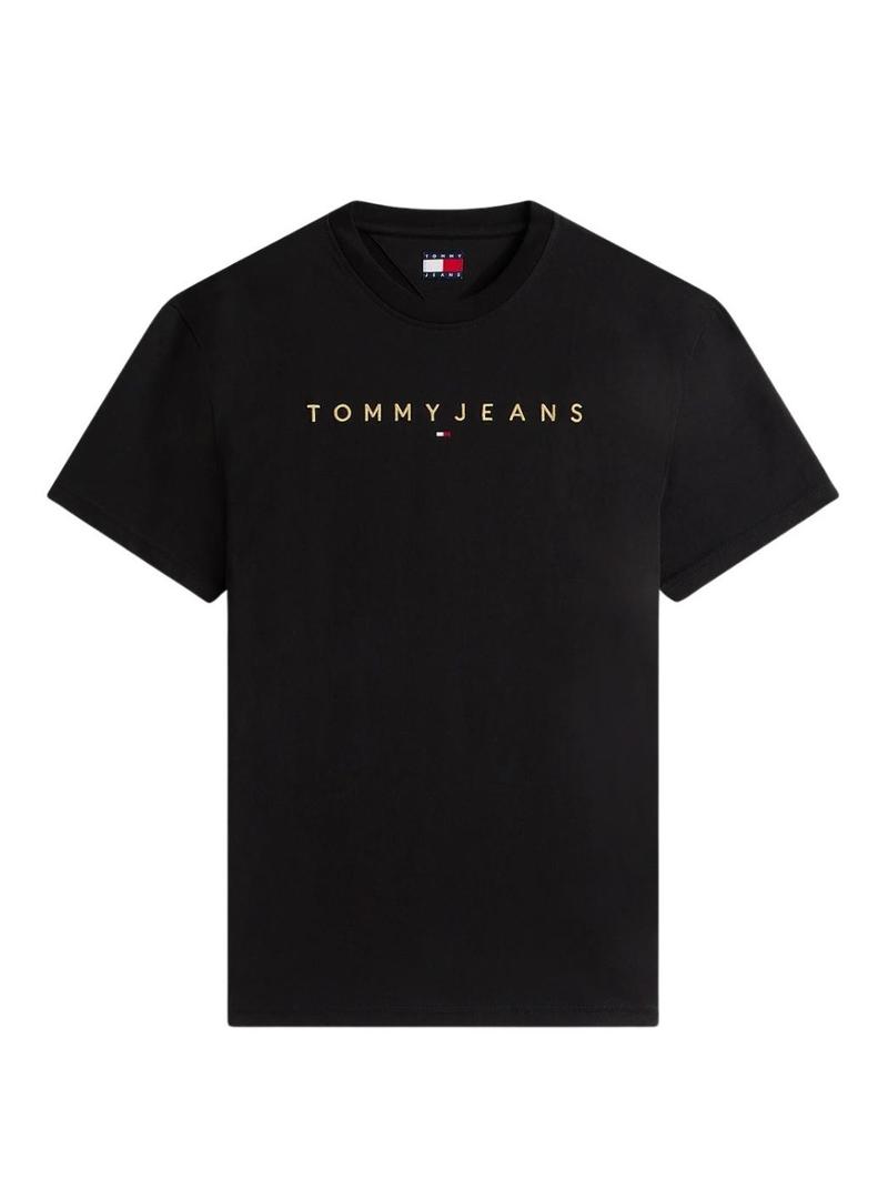 Camiseta Tommy Jeans Linear Logo preta para homem.