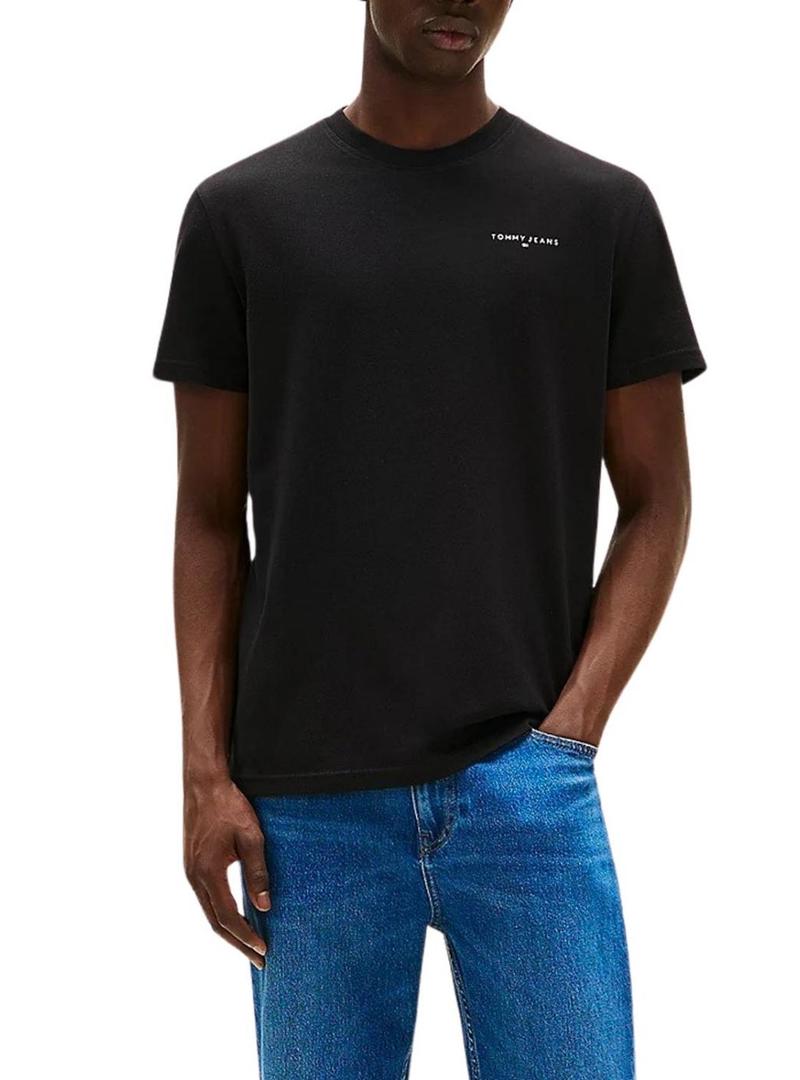 Camiseta Tommy Jeans. Modelo Linear Chest. Cor preta. Manga curta. Gola redonda. Logotipo da marca no peito. Corte slim.