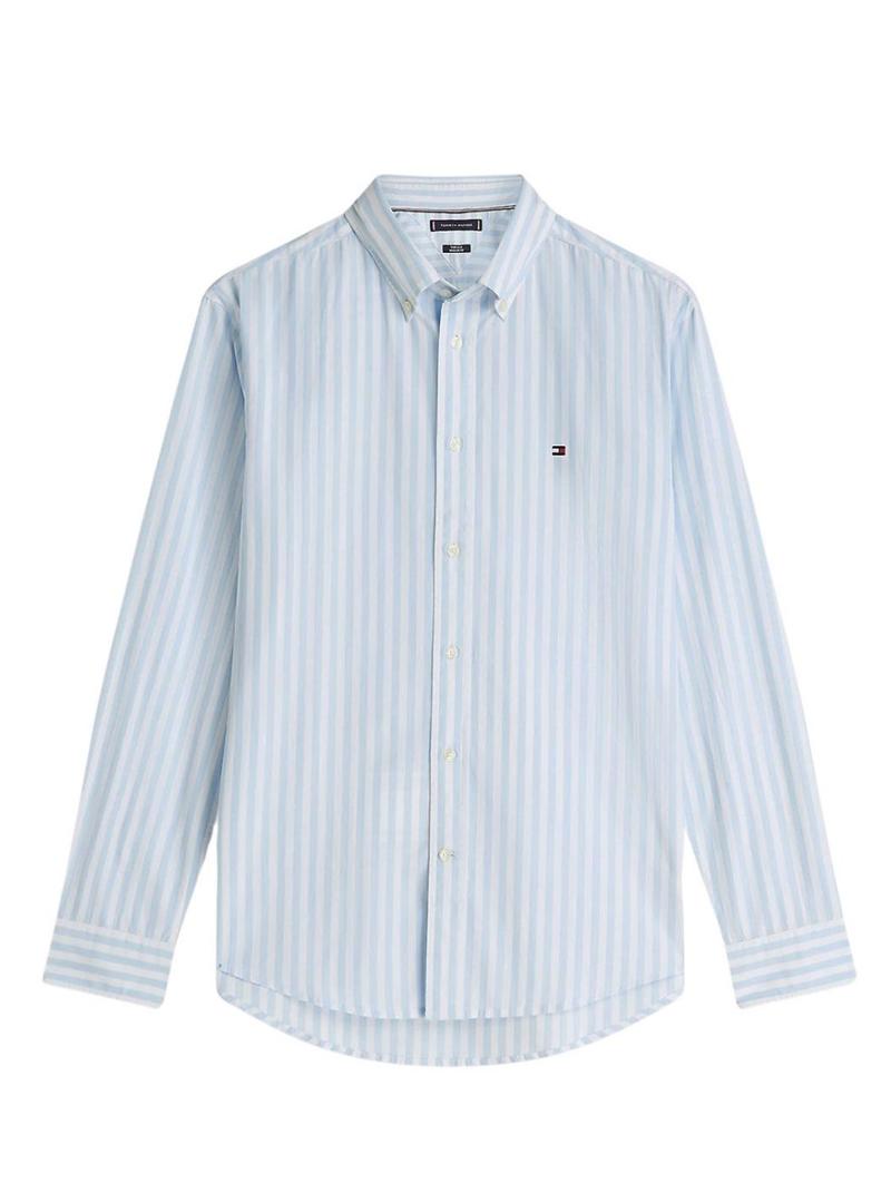 Camisa Tommy Hilfiger Oxford listrada azul e branca para homem