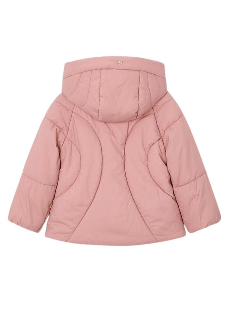 Casaco acolchoado Mayoral. Modelo Colegial. Cor-de-rosa. Fecho com zíper. Gola alta. Capuz removível. Bolsos laterais.