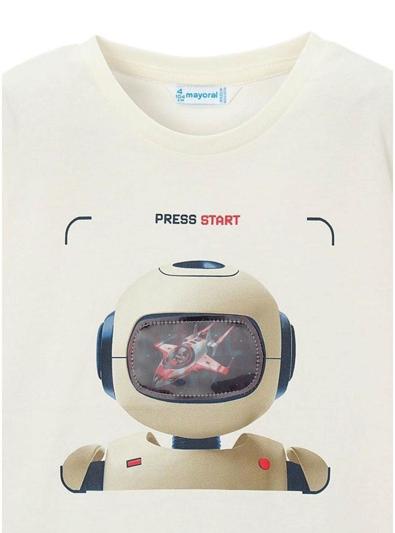Camiseta Mayoral Robot bege para menino.