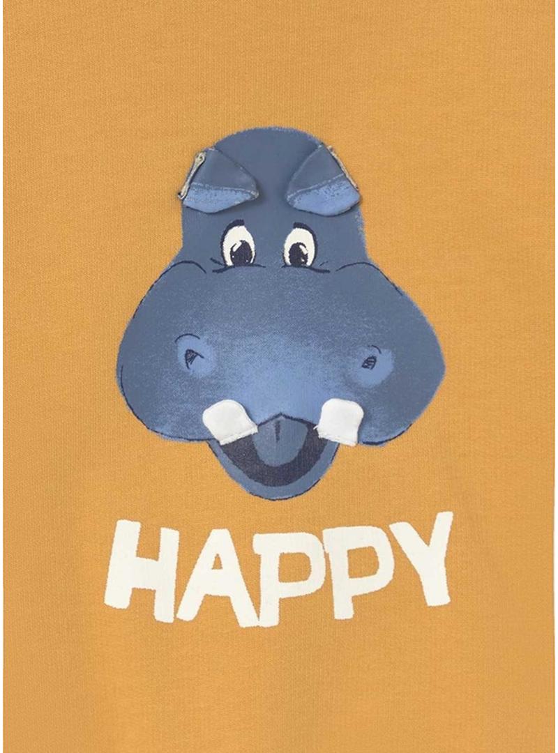 Moletom Mayoral. Modelo Happy. Cor laranja. Gola redonda com botões. Extremidades caneladas. Ajuste regular. Ilustração de hipopótamo estampada na frente com orelhas em relevo.