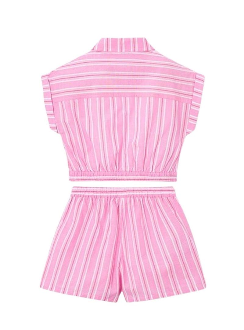 Conjunto Mayoral. Cor-de-rosa. Tecido com estampa de riscas. Camisa de manga curta. Ajuste folgado. Manga curta. Comprimento cropped. Bolsos no peito. Calções curtos com cintura elástica.
