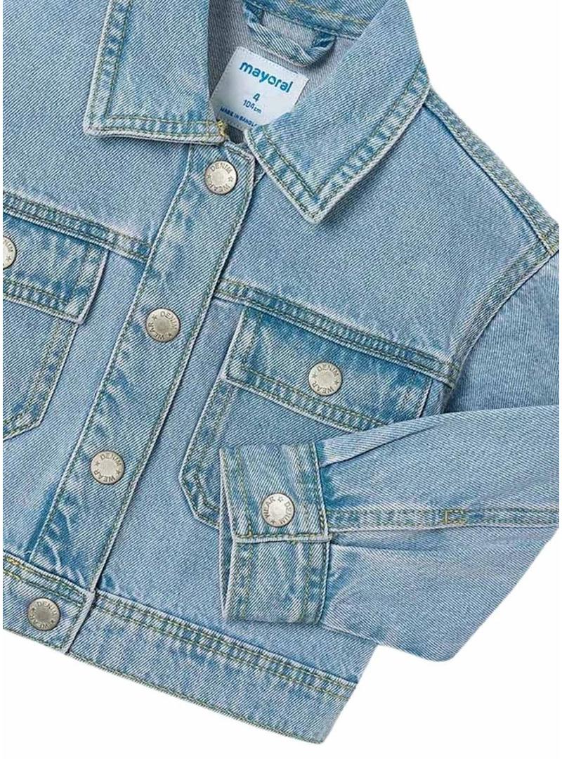 Jaqueta jeans da Mayoral. Modelo básico. Denim claro. Fechamento com botões metálicos. Comprimento na cintura. Ajuste reto. Bolsos com aba na frente.