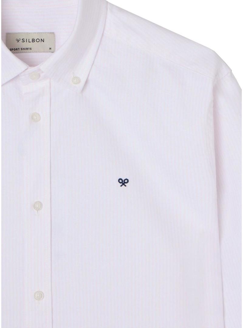Camisa Silbon rosa e branca listrada para homem