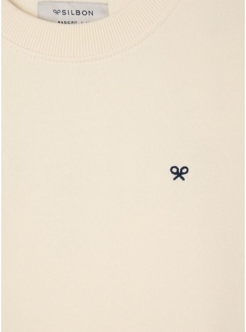 Moletom Silbon. Modelo étnico. Cor creme. Gola redonda. Extremidades caneladas. Ajuste regular. Logotipo bordado no peito e nas costas em tons de azul.