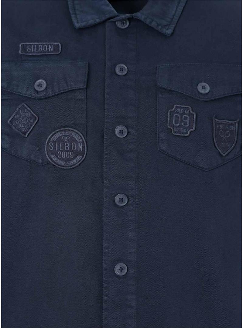 Camisa de manga longa Silbon com remendos azul marinho para homem.