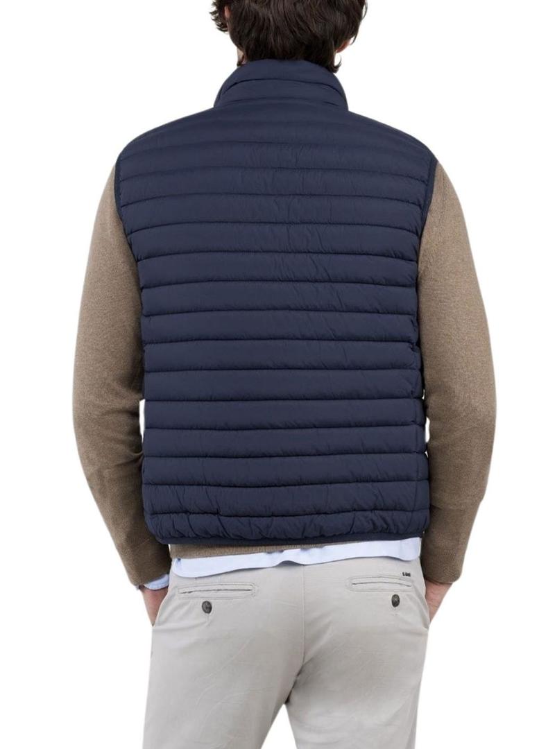 Colete acolchoado El Ganso. Modelo básico. Cor azul marinho. Gola alta. Fecho com zíper. Logotipo circular no peito. Tecido acolchoado leve resistente à água. Bolsos laterais. Cava elástica.