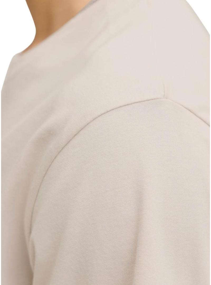Camiseta Jack and Jones. Modelo Frank. Cor bege. Gola redonda. Manga curta. Corte folgado. Estampado na parte frontal.