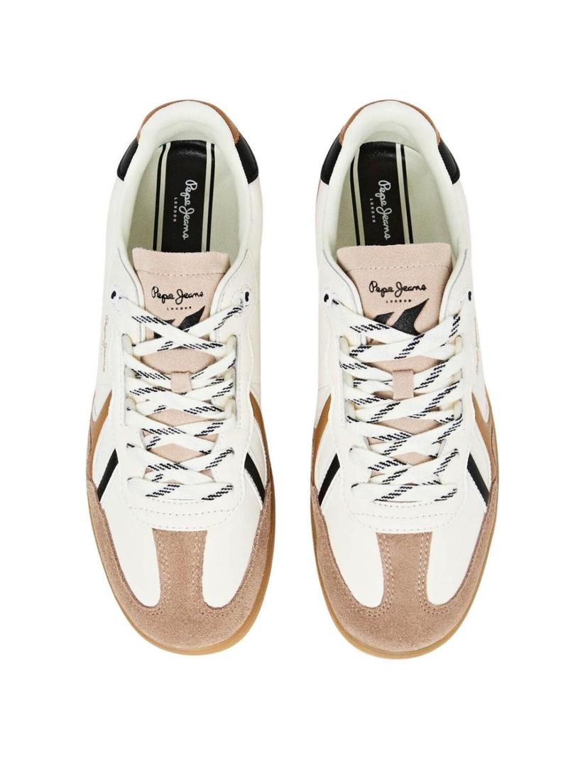 Sapatilhas Pepe Jeans. Modelo Ball Mood. Cor branca. Painéis de camurça em cor bege. Fecho com cordões. Detalhes em preto. Sola de borracha em cor natural translúcida. Palmilha termoformada e removível.