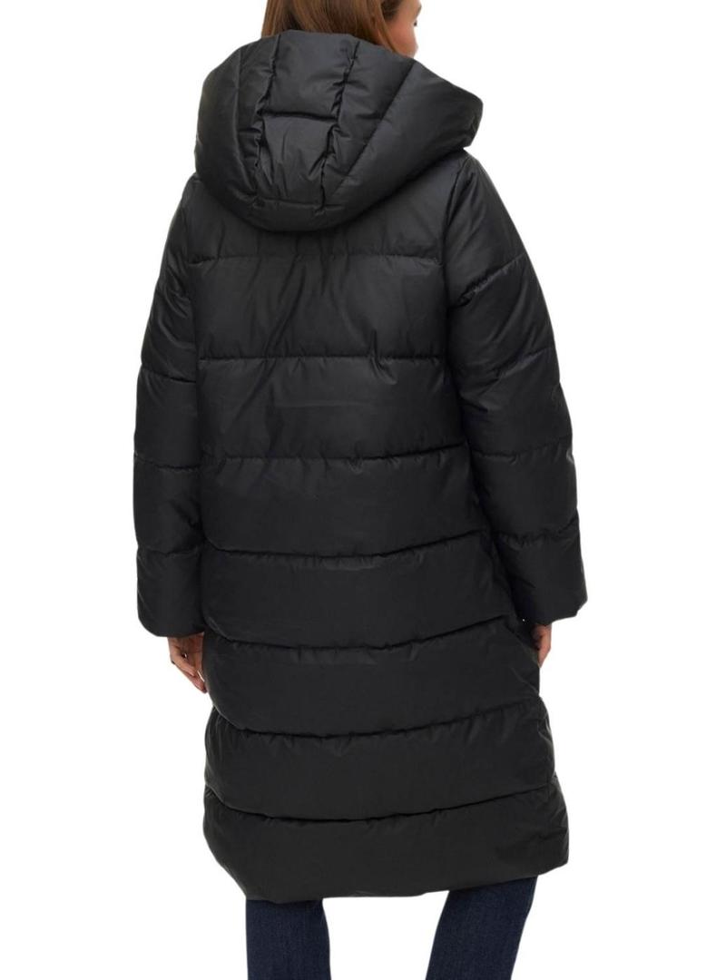 Casaco acolchoado da Vila. Modelo Miriam. Cor preta. Encerramento assimétrico com zíper. Capuz envolvente. Tecido acolchoado. Bolsos laterais. Extremidades das mangas elásticas. Corte longo.