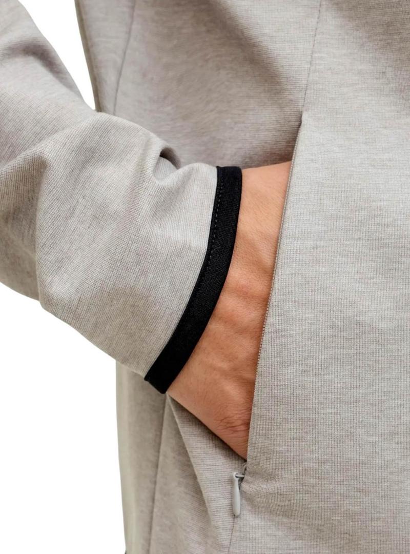 Moletom Jack and Jones. Modelo Base. Cor cinza. Fechamento com zíper. Gola alta. Detalhes em preto. Com capuz. Bolsos laterais. Ajuste regular.