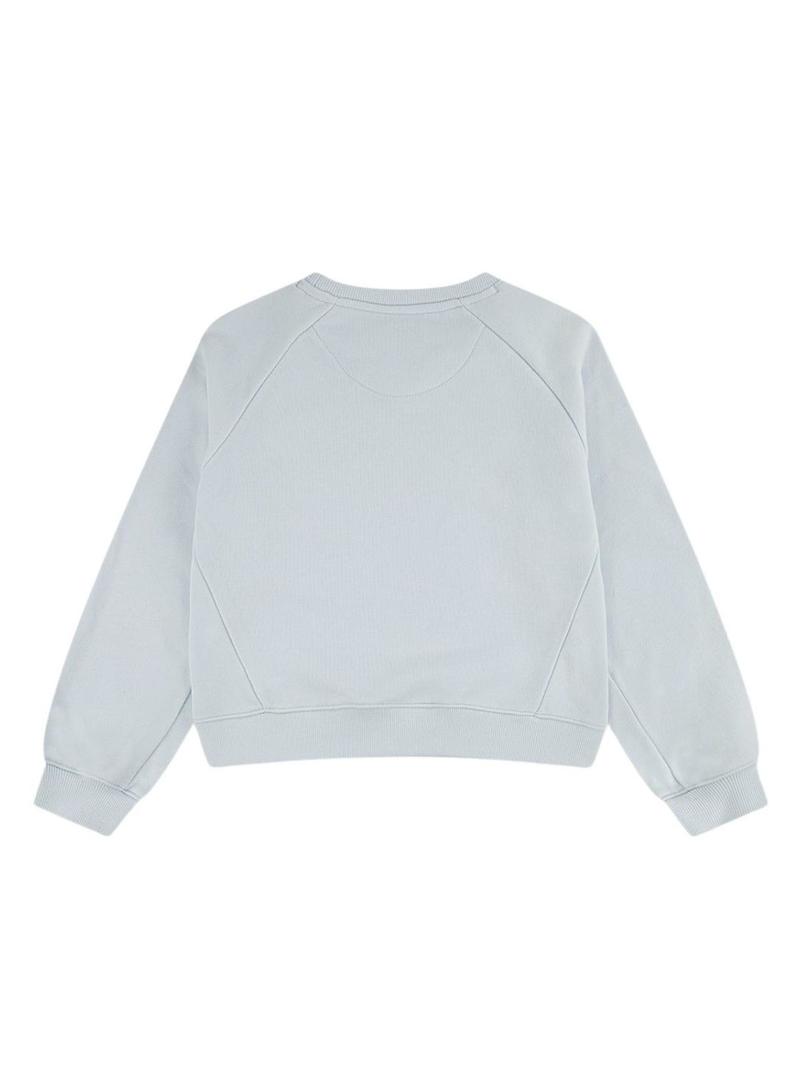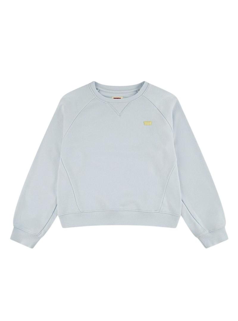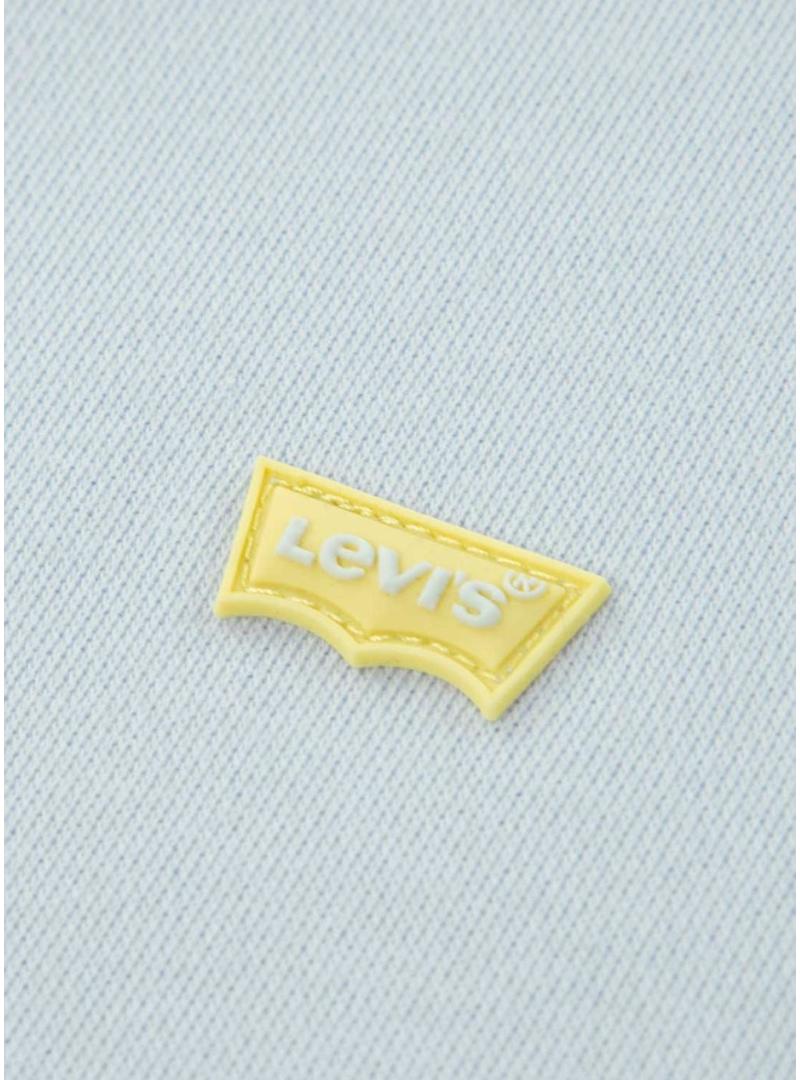 Moletom Levis. Modelo Meet And Greet. Cor azul. Gola redonda com inserção em V. Acabamentos canelados. Ajuste confortável. Manga raglã. Patch da marca bordado no pescoço em contraste.