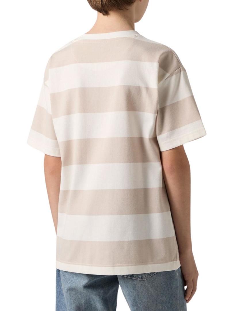 Camiseta Levis Big Stripe bege para menino.