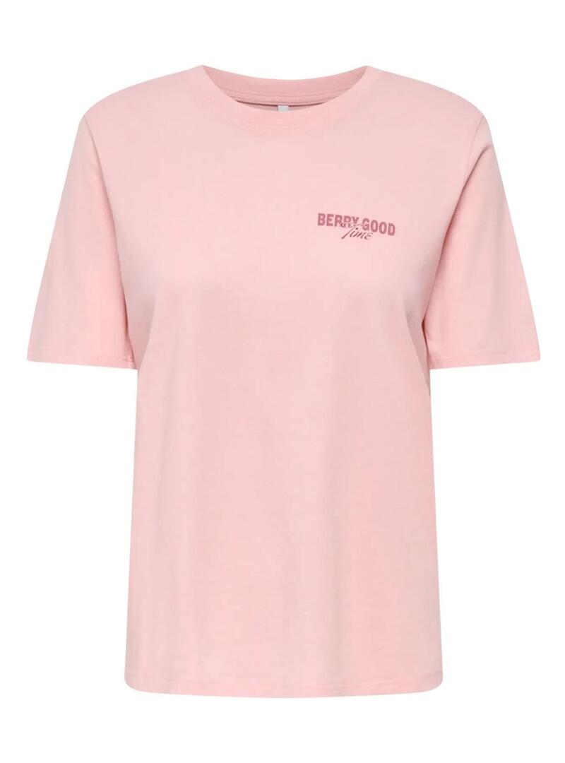 Camiseta Only. Modelo Lucy. Cor-de-rosa. Gola redonda. Manga curta. Corte regular. Gráfico no peito e nas costas.