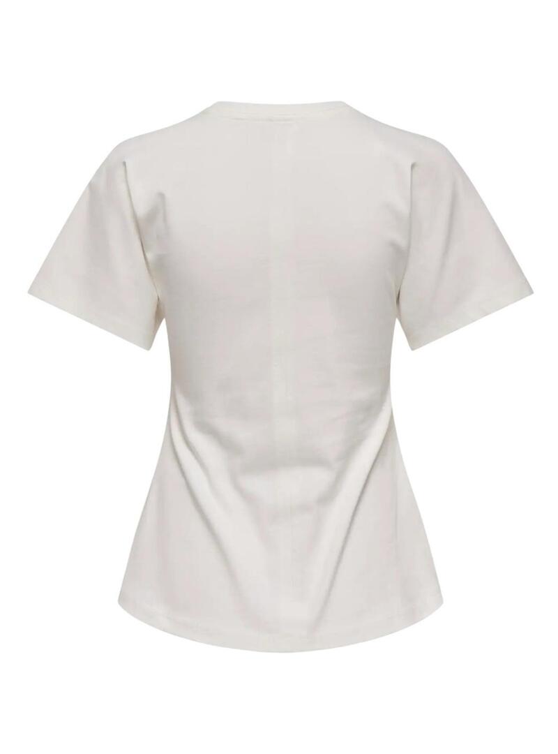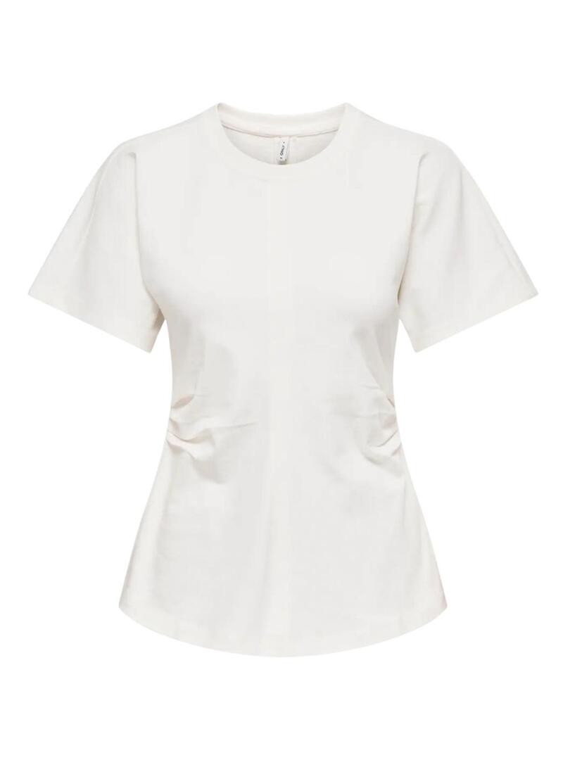 Camiseta Only. Modelo Marie. Cor branca. Gola redonda. Manga curta. Corte regular. Drapeados laterais na cintura com efeito enrugado. Tecido macio e respirável.