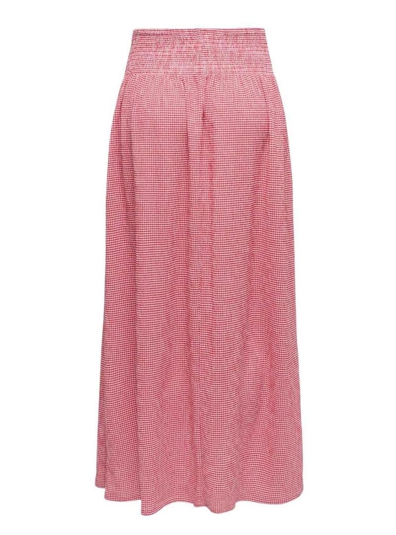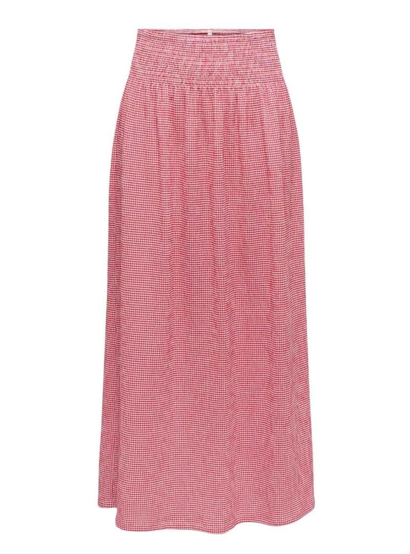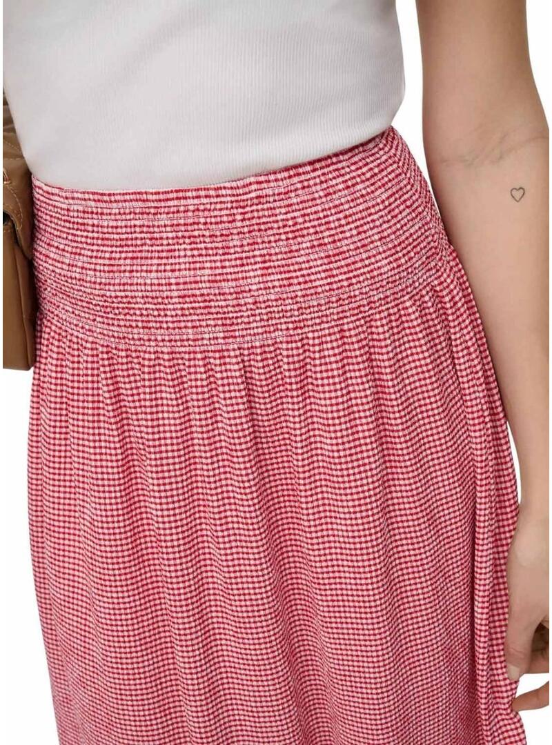 Saia Only. Modelo Celle. Cor vermelha. Estampa vichy. Comprimento longo. Cintura elástica franzida. Caimento fluido.