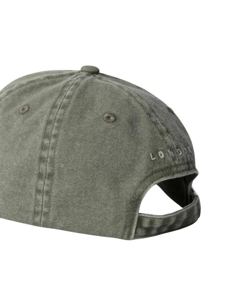 Boné Pepe Jeans. Cor verde. Viseira curva com detalhe de costuras. Ilhós de ventilação. Correia ajustável com fivela de metal na parte de trás. Logo bordado em contraste no painel frontal. Tecido lavado com efeito desgastado. Logo London bordado no painel traseiro.