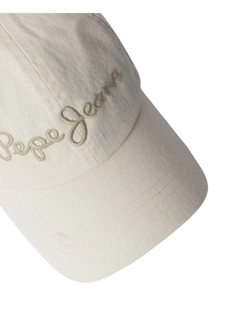 Boné Pepe Jeans. Cor bege. Viseira curva. Ilhós de ventilação. Correia ajustável com fivela de metal com logotipo gravado. Logotipo da Pepe Jeans bordado na parte da frente. Tecido lavado com efeito desgastado. Logotipo de Londres bordado no painel traseiro.