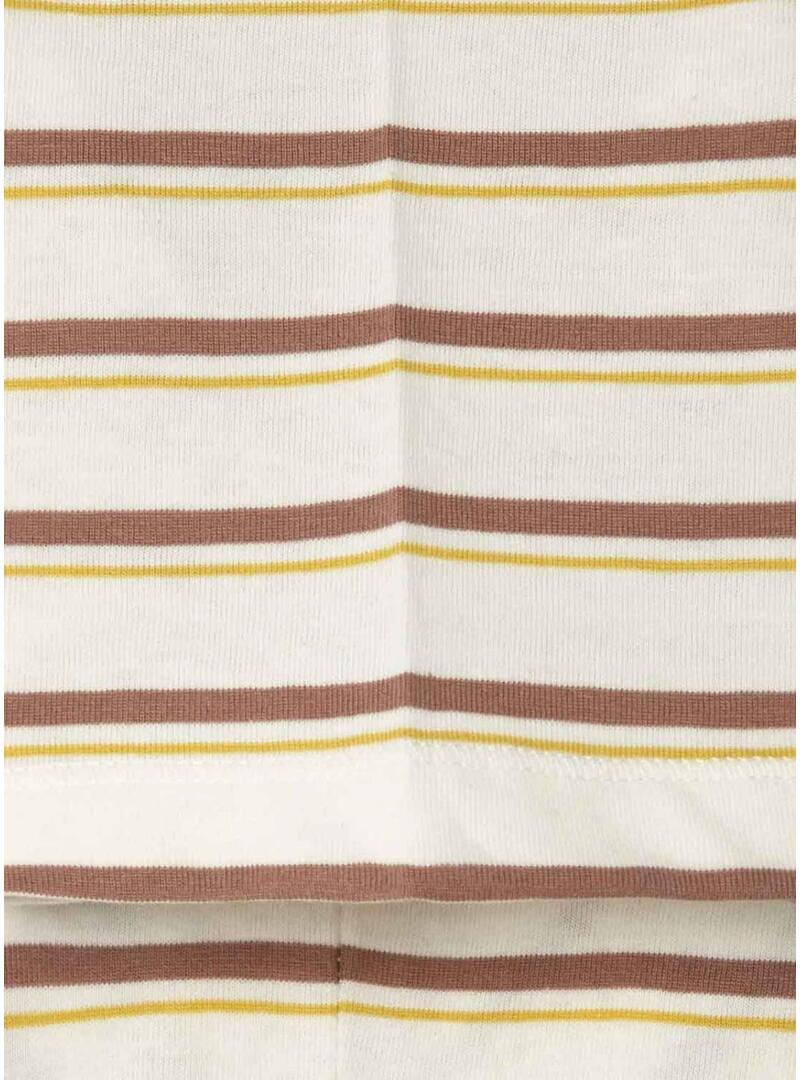 Camiseta Pepe Jeans. Cor bege. Listrado estampado. Gola redonda. Manga curta. Bolso tipo remendo no lado esquerdo. Logo Pepe Jeans no bolso frontal. Tecido leve de jersey.