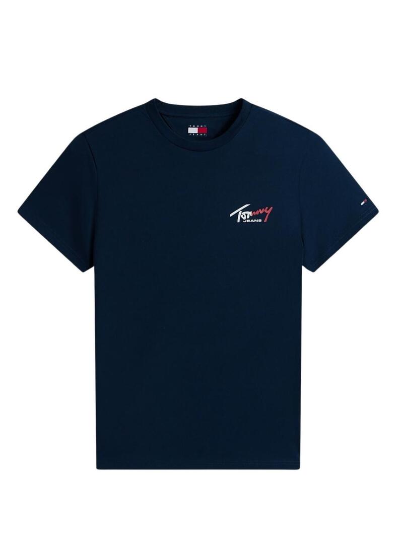 Camiseta Tommy Jeans Sign Chest Slim marinho para homem.