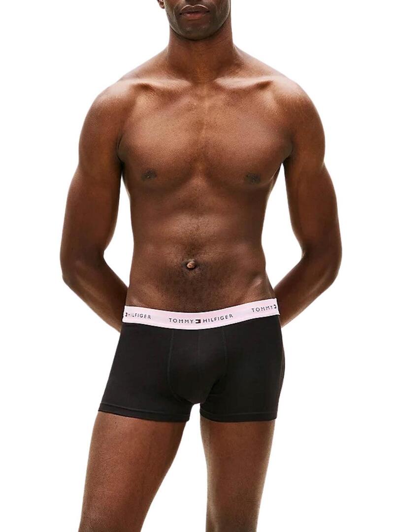 Pacote de 3 cuecas Tommy Hilfiger Trunk com cintura com logo preto para homem.