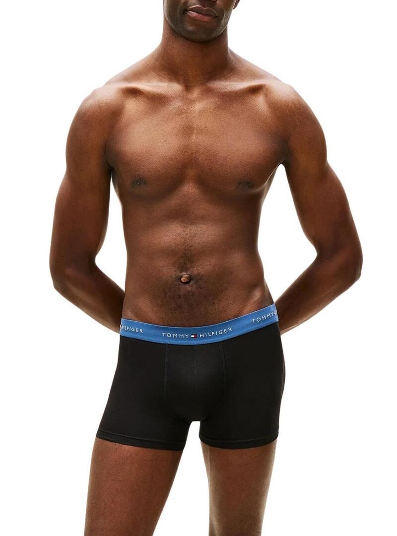 Pack 3 cuecas Tommy Hilfiger Trunk Signature preta cintura multi para homem.
