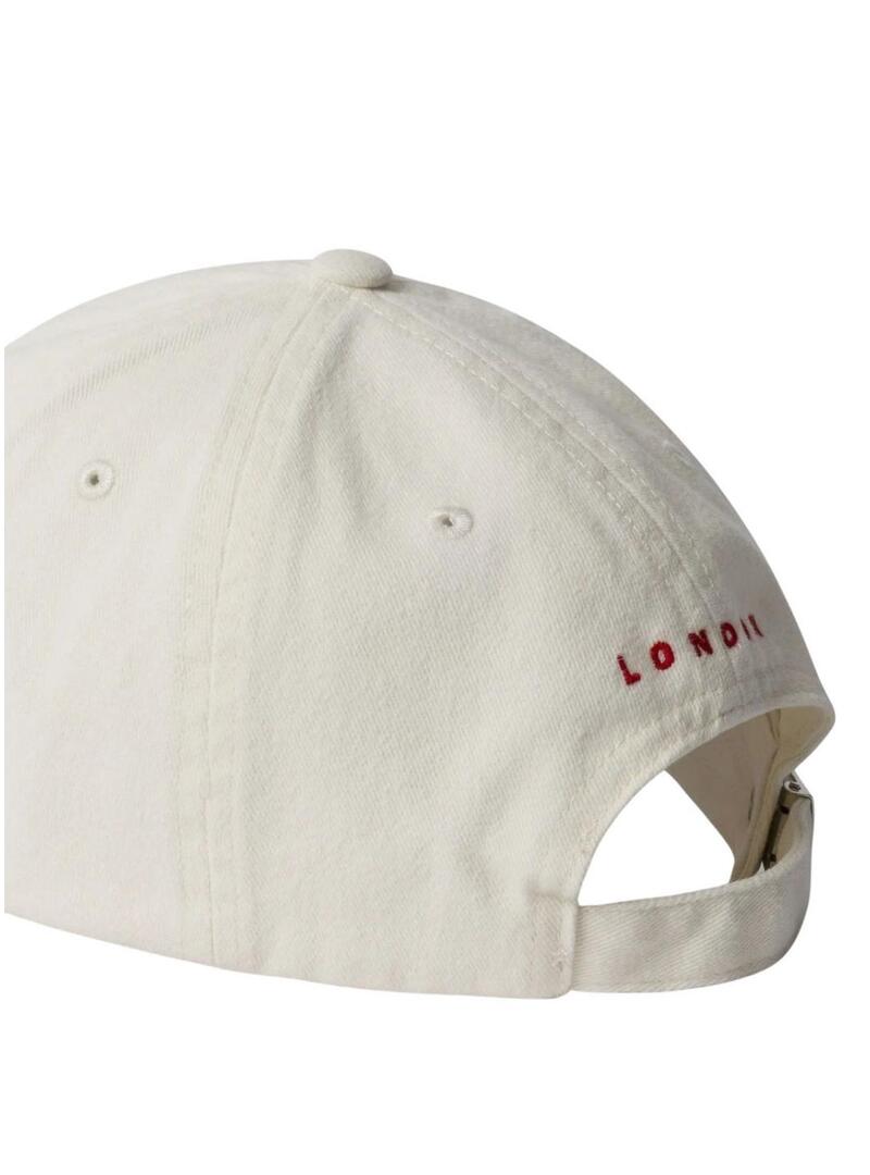 Boné Pepe Jeans. Modelo Alix. Cor branca. Fecho traseiro ajustável metálico. Ilhós de ventilação. Logotipo bordado na parte frontal em preto. Efeito desgastado. Logotipo de Londres na parte traseira. Formato curvo com detalhes nas costuras.