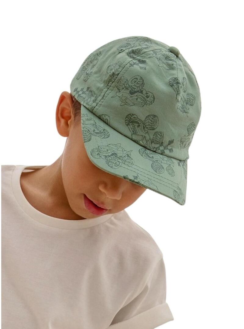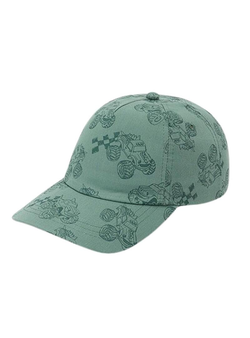 Boné verde com carros para menino.