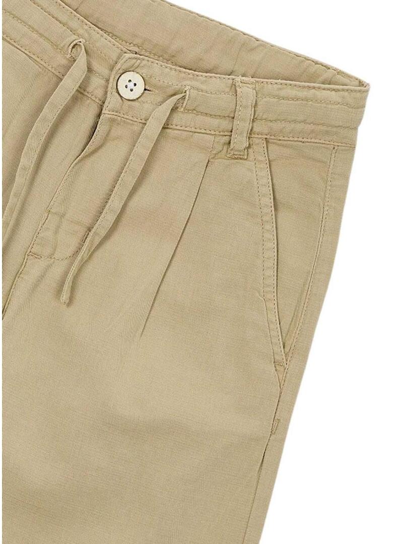 Calça Mayoral. Corte chino. Cor bege. Com bolsos traseiros. Cintura elástica e ajustável. Bolsos laterais. Pregas na cintura.