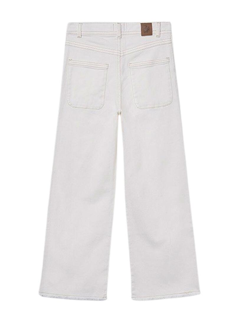 Calças Mayoral. Cor cru. Cintura com passadores. Fecho com botão. Bolsos na frente. Pregas frontais. Perna larga. Borda reta. Bolsos traseiros com lapela. Corte amplo.