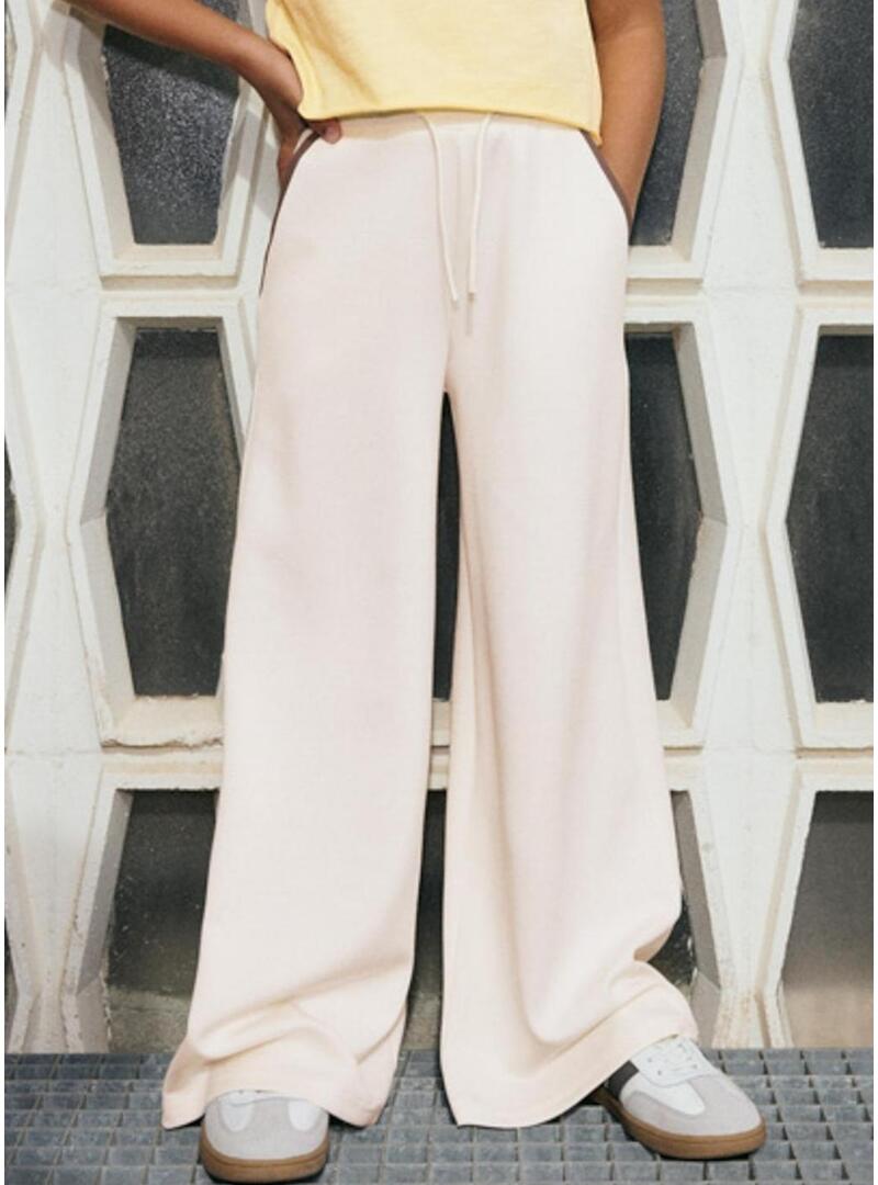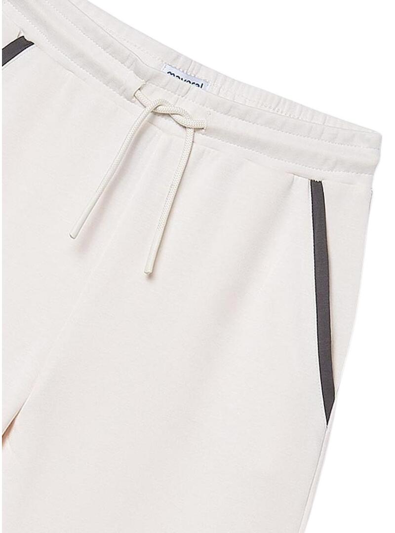 Calça Mayoral. Cor Bege. Corte largo. Tecido de malha. Bolsos laterais. Ajustável com cordão.