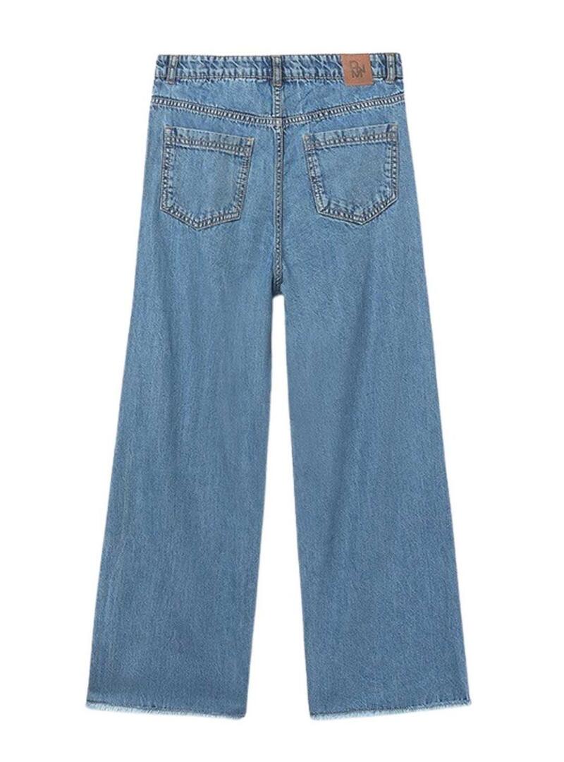 Calça jeans Mayoral. Cor azul. Corte reto. Estampa de estrelas nas laterais. Bolsos laterais. Fecho com botão metálico.