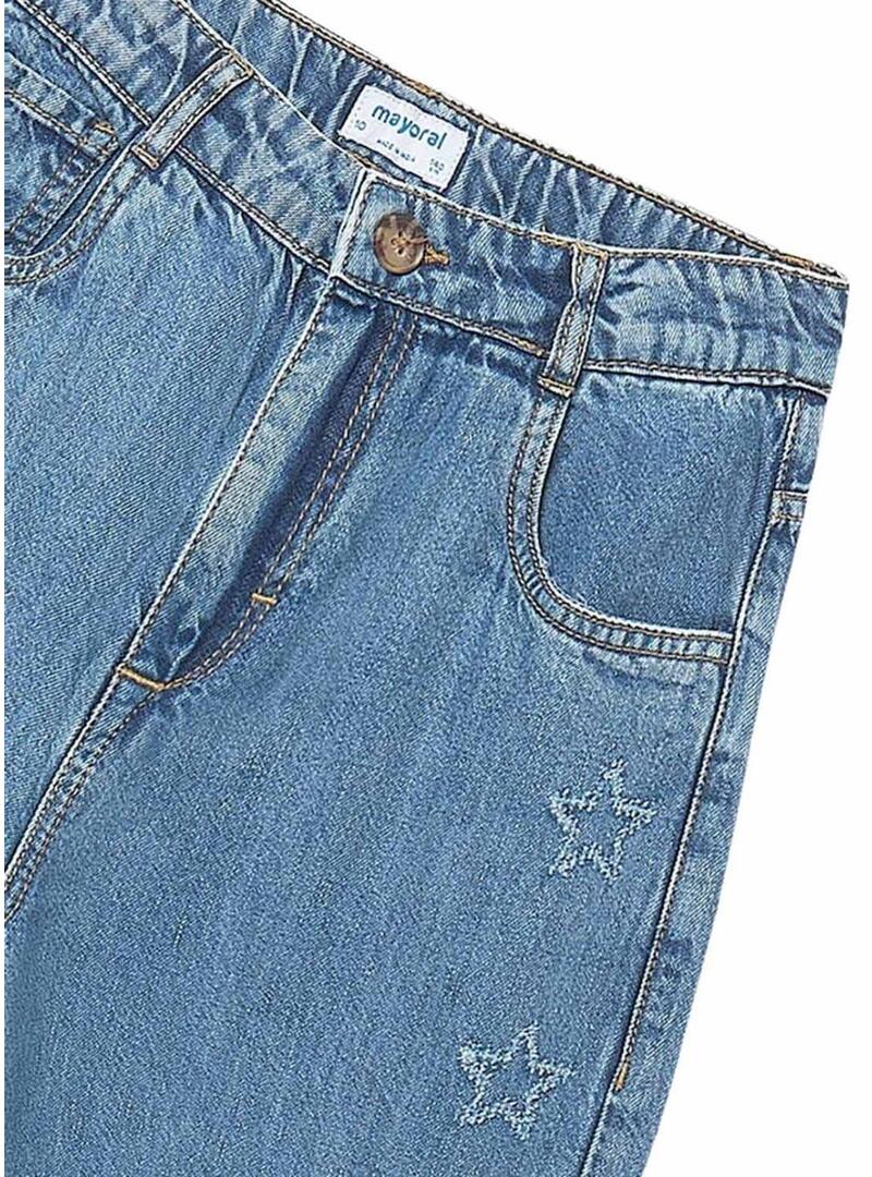 Calça jeans azul com estrelas da Mayoral para meninas.