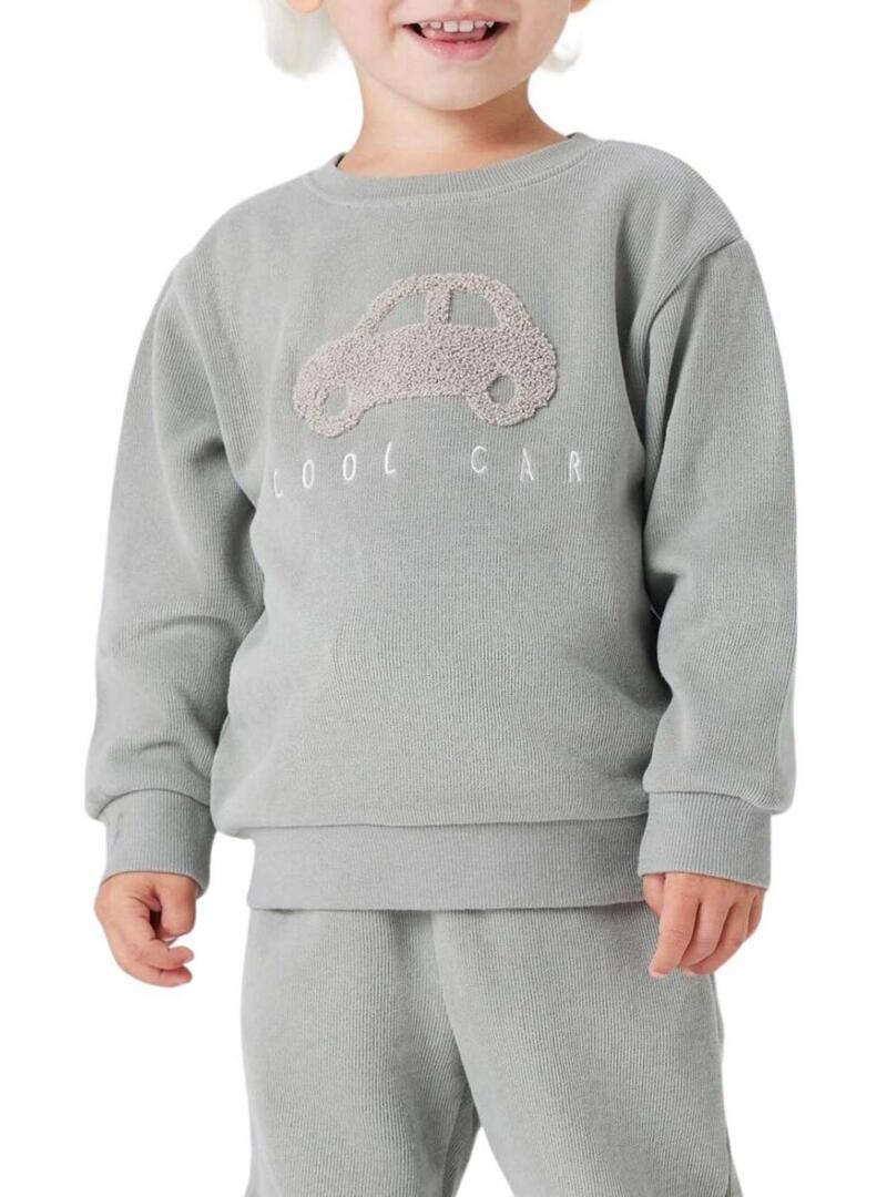 Moletom Name It verde acinzentado com carro para menino.