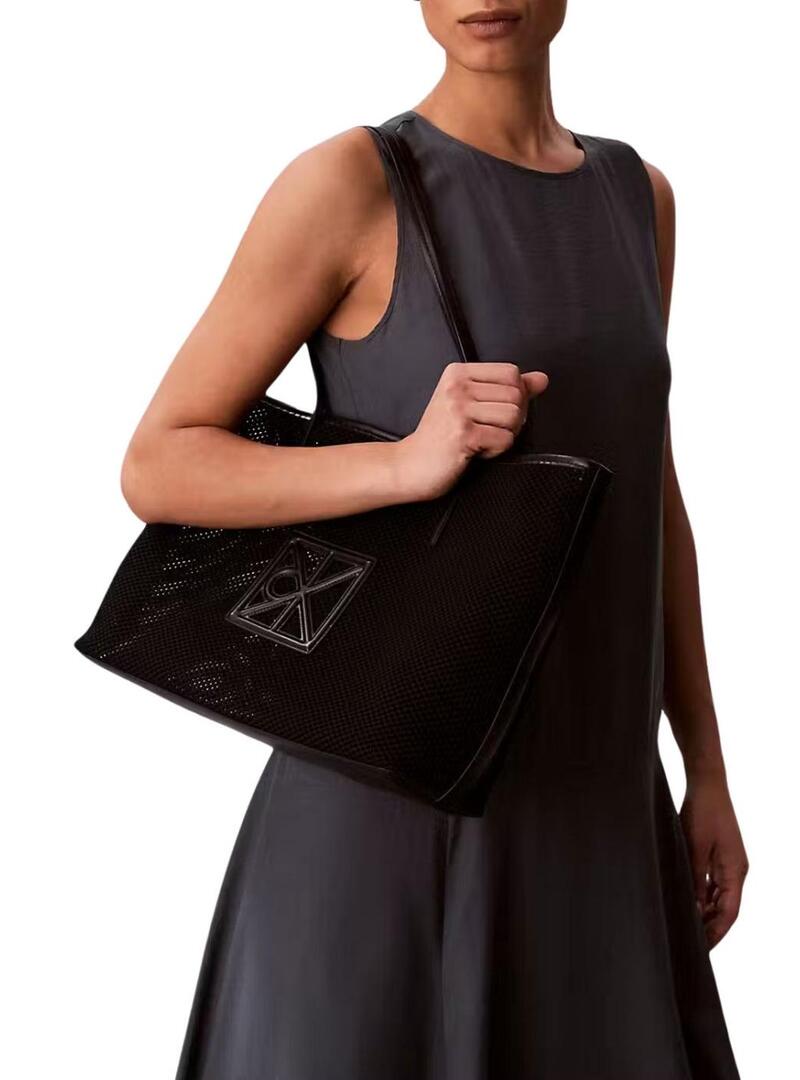 Bolsa Calvin Klein Jeans Emblem em malha preta para mulher.