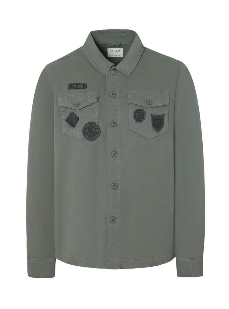 Camisa sobreposta Silbon Patches verde para homem.