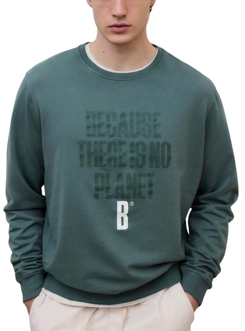 Moletom Ecoalf. Modelo Bardera. Cor verde. Gola redonda. Manga comprida. Feito com algodão reciclado. Corte regular. Estampa Because There is no planet b na parte da frente. Acabamentos canelados. Tingido e lavado na peça. O modelo veste o tamanho L.