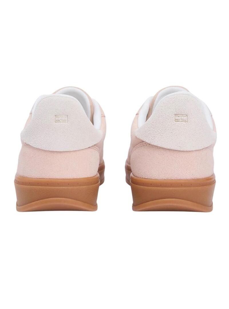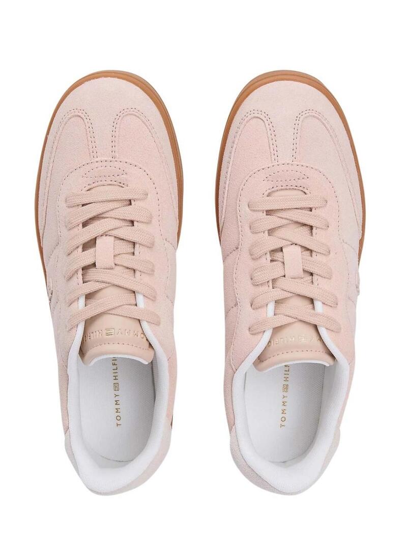 Sapatilhas Tommy Jeans. Modelo Heritage Monograma. Cor-de-rosa. Exterior em camurça. Forro de poliéster. Palmilha removível de borracha termoplástica reciclada. Sola de borracha. Entressola contrastante. Emblema com monograma. Corte baixo. Com atacadores.