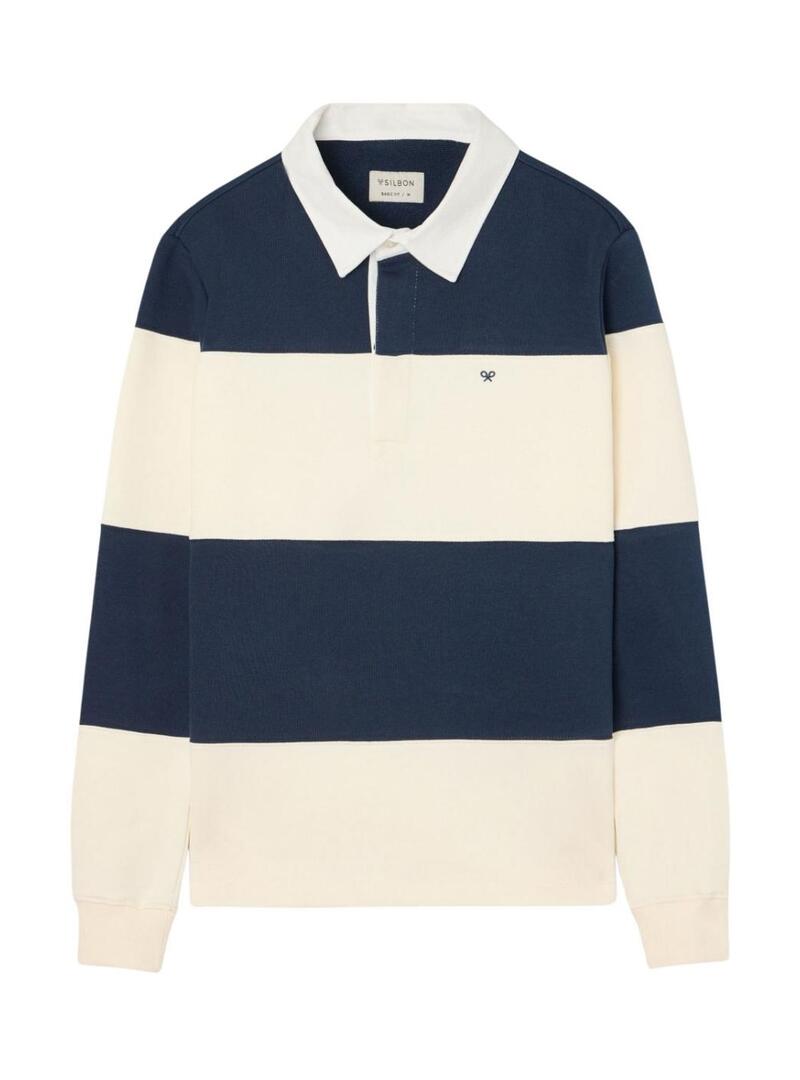 Moletom polo Silbon listrado azul e branco para homem.
