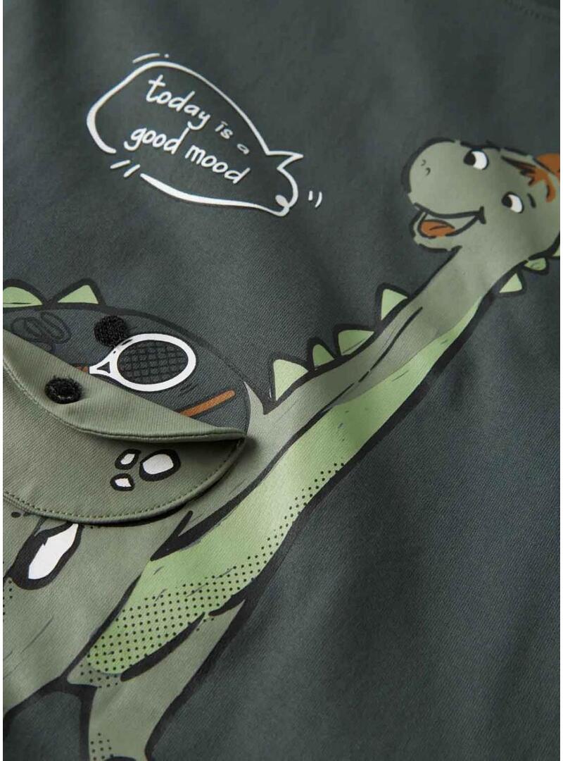 Camiseta Name It dinossauro verde escuro para menino.