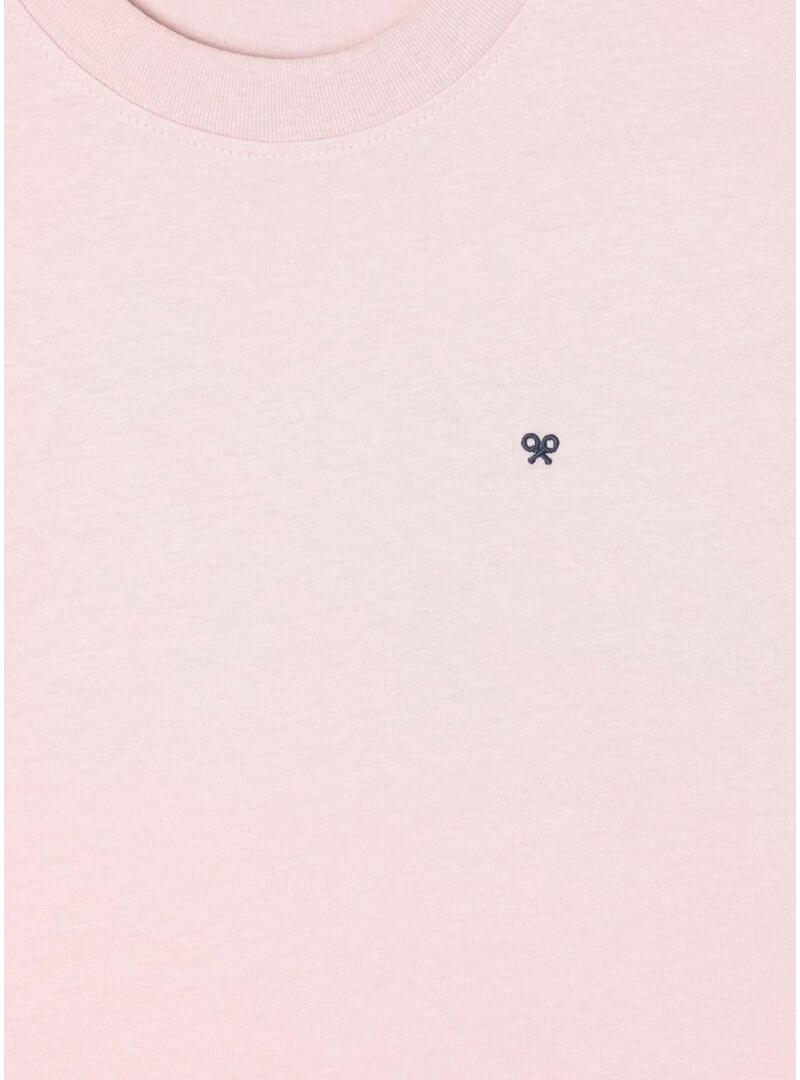Camiseta Silbon. Modelo Beach Club. Cor rosa. Gola redonda. Manga curta. Mini logotipo de raquetes no peito. Detalhes em azul marinho. Ilustração estampada nas costas.